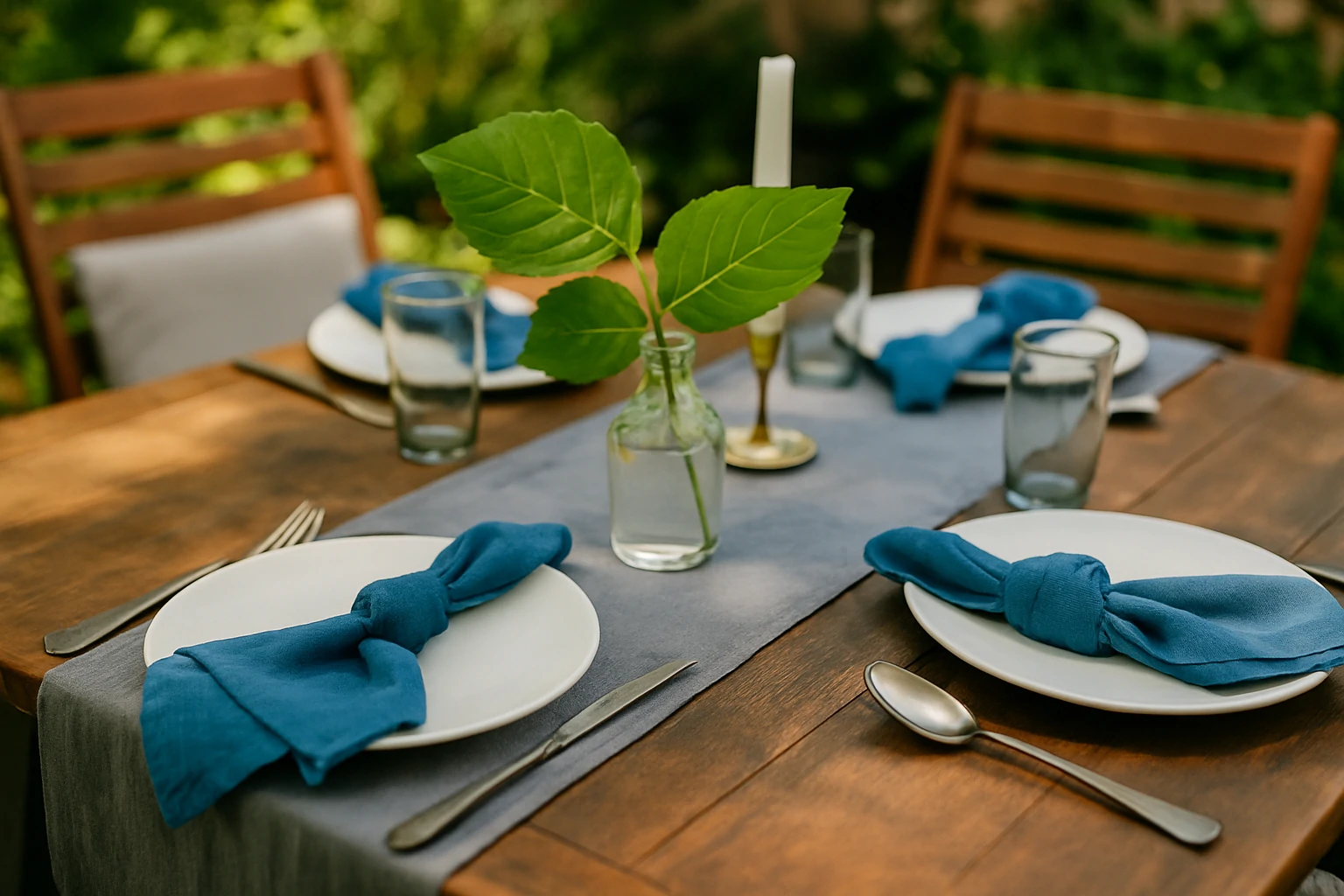 Look around your outdoor space. Let the colors and textures nearby guide your table setup. If trees surround the area, use soft greens in your napkins or centerpieces. If the evening sky turns pink, match that tone with candles or flowers. These small choices help the table feel connected to its place.